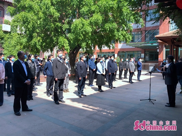中国山东网-感知山东4月30日讯 (记者 刘自锐) 4月30日上午,“五四”青年节来临之际,为激励和引领广大团干部、团员青年传承弘扬五四精神,团省委在山东建团纪念馆举行“弘扬五四精神传承红色基因”主题团日活动。团中央书记处书记关志洁,团省委书记刘天东,副书记袁良、刘少华、尚胜波出席活动。驻省总工会机关纪检监察组有关负责同志、团省委机关全体党员干部参加活动。菏泽市东明县武胜桥镇玉皇庙村团员青年通过视频连线参加活动。